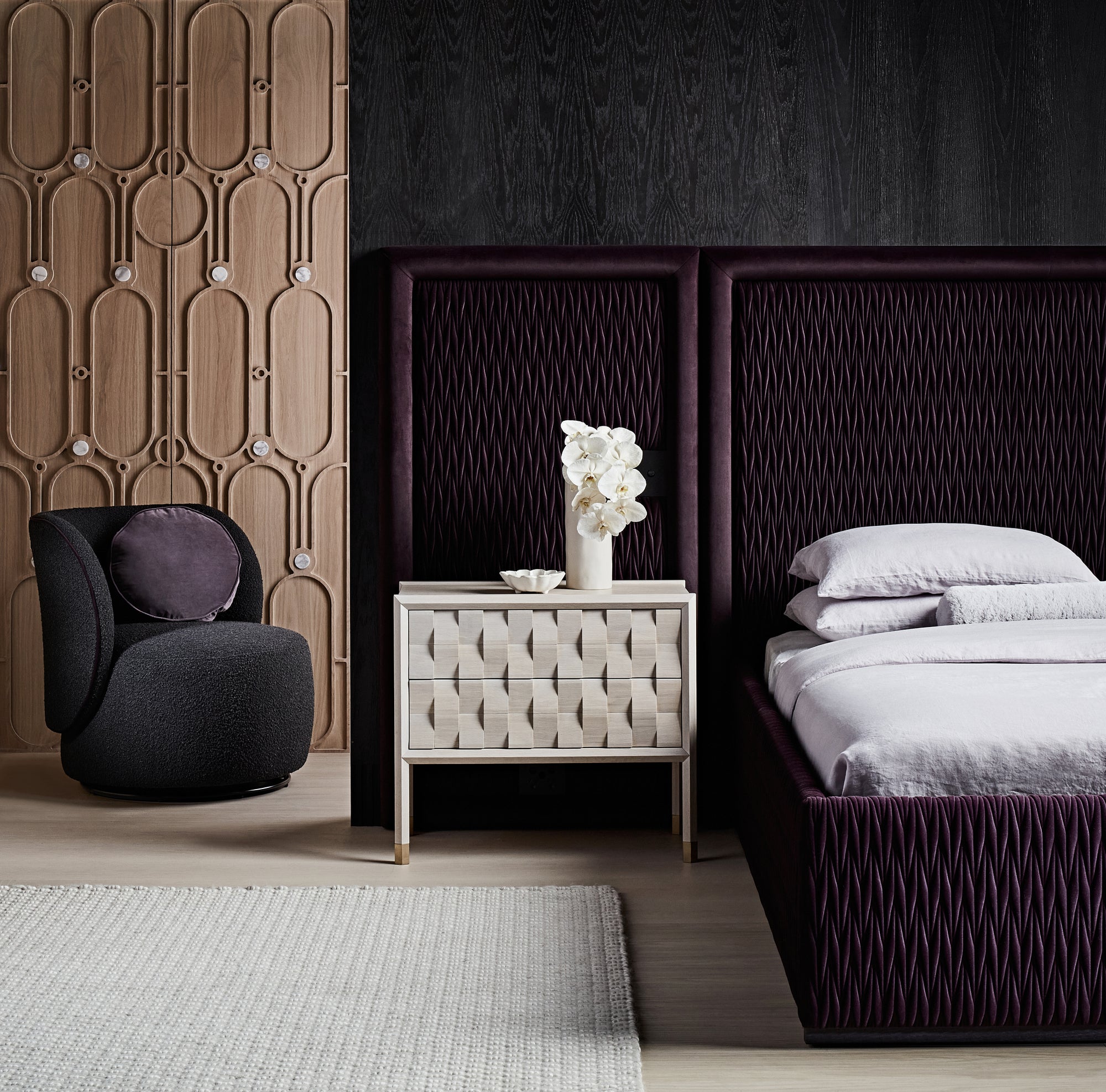 A beautifully designed bedside table is the finishing touch to any bedroom. Marble handles to ribbed drawer fronts and intricate timber details shape the Zuster collection. Feel the difference with luxuriously lined American Oak drawers with concealed soft close drawer runners.